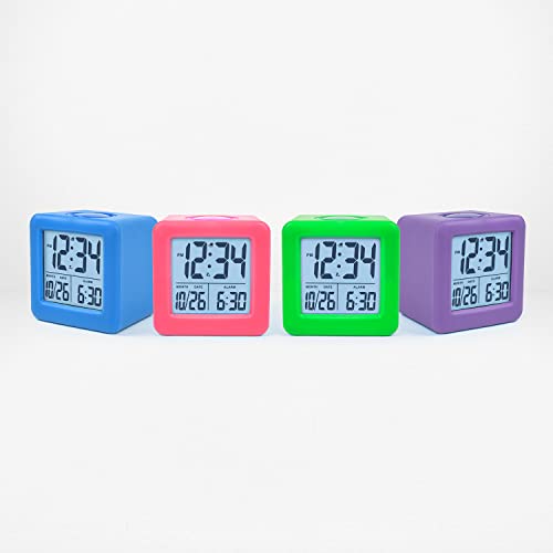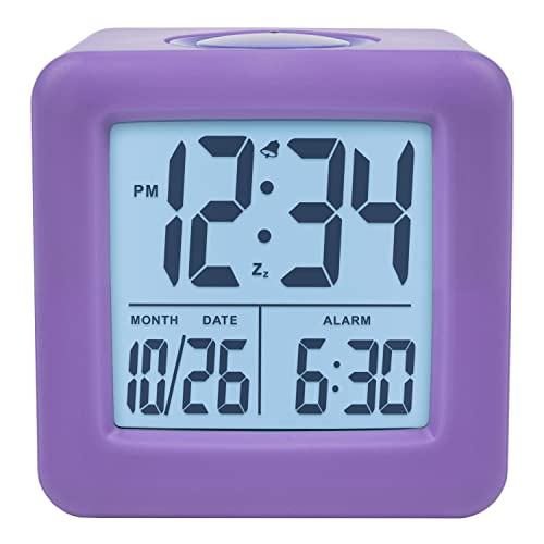 Specification: Equity 73004 Purple Soft Cube LCD Alarm Clock with Smart Light