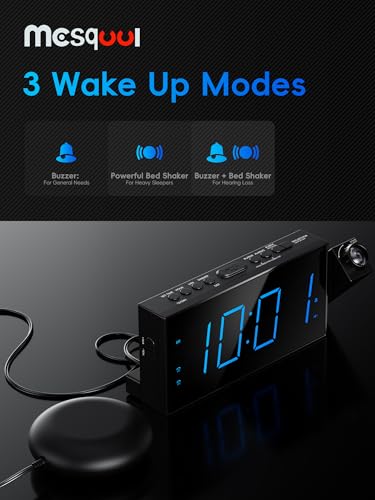 Specification: Mesqool Projection Alarm Clock, Loud Vibrating Alarm Clock for Heavy Sleepers, Adjustable Projection Brightness,Hearing Impaired & Deaf People, Digital Alarm Clock with USB Charging Port