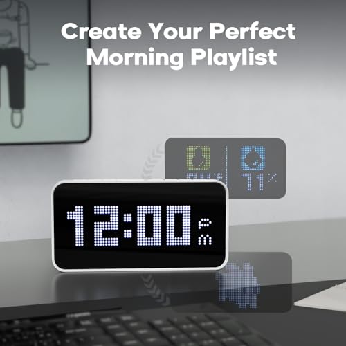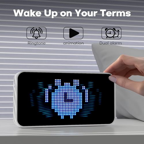 Specification: PixelRise Smart Alarm Clock for Bedroom, Cool Pixel Art LED Dot Matrix Display – Weather Temperature Humidity Animation, Loud Dual Alarm for Heavy Sleeper, Sleep White Noise, WiFi Weather & Time Sync