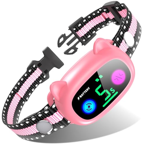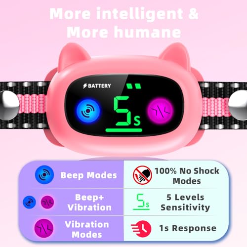 Specification: Bark Collar, Dog Bark Collar for Large Medium Small Dogs, Smart Bark Collar, Rechargeable Anti Barking Collar with Waterproof No Shock 5 Adjustable Sensitivity Beep Vibration (Pink)