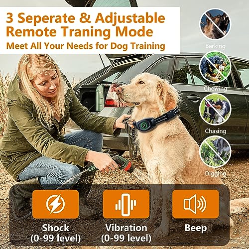 【3 Safe Training Modes】Our dog shock collars with a remote include 3 separate & adjustable training modes: beep, vibration(0-99), and safe shock(0-99), allowing you to train dogs in accordance with their aptitude by choosing the best appropriate mode level, correcting bad behaviors in time. The remote also come with a safety lock, efficiently prevent your dogs from unnecessary punishment due to false trigger.