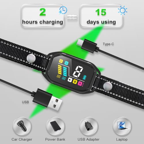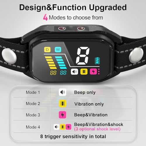 Specification: Dog Bark Collar, Anti Barking Collar for Large Medium Small Dogs, Rechargeable No Barking Collar, Smart Bark Collar with Automatic Barking Counting Function for Tranning, 8 Sensitivity & 4 Modes.
