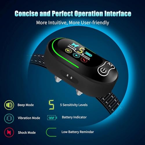 Specification: Dog Bark Collar, Rechargeable Smart Barking Collar, Anti Bark Training Collar with Adjustable Sensitivity Beep Vibration Shock, Bark Shock Collar for Large Medium Small Dogs (Black)