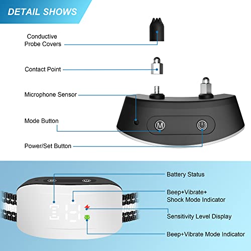 Specification: Dog Bark Collar,Bark Collar with Adjustable Sensitivity for Large Medium Small Dogs,Smart Bark Collar Anti False Trigger,Rechargeable Anti Barking Collar with Beep Vibration and Optional Shock