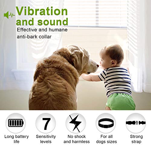 Specification: Dog No Bark Collar with Smart Detection Vibration and Harmless Shock- Rechargeable Anti Barking Device for Small Medium and Large Dog