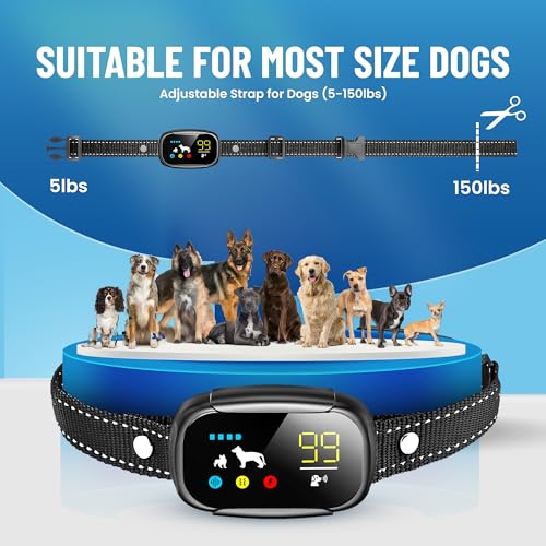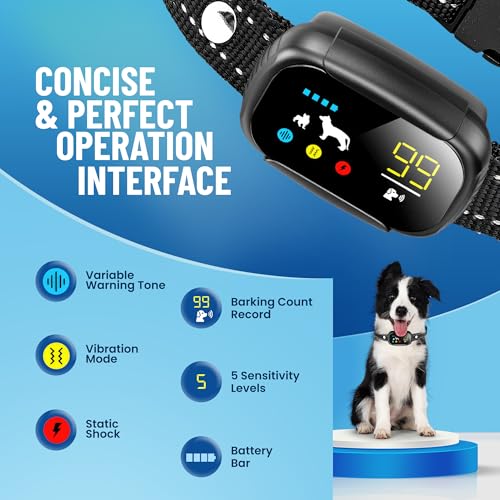 LED Display for Easy Monitoring: The collar features a clear and intuitive LED display that shows important information at a glance. You’ll be able to easily check the current sensitivity level, bark count, battery status, and mode (beep, vibration, or shock), allowing you to adjust settings as needed.