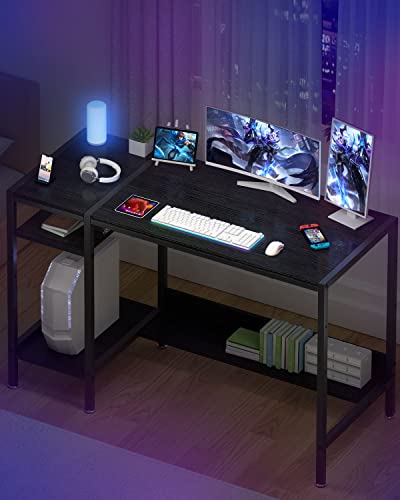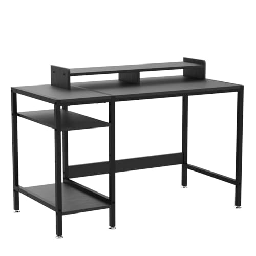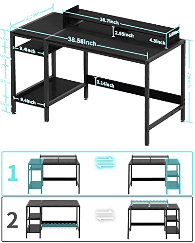 Computer Desk – 38” Gaming Desk, Home Office Desk with Storage, Small Desk with Monitor Stand, Writing Desk for 2 Monitors, Adjustable Storage Space, Modern Design Corner Table, Black.