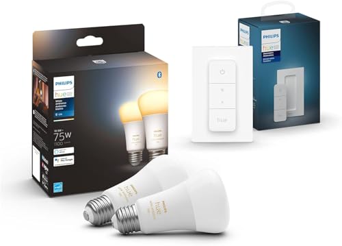 Specification: Philips Hue Smart Bundle: 2-Pack White A19 Bluetooth + V2 Dimmer Switch (Hue Hub Optional, Compatible with Alexa, Google Assistant)