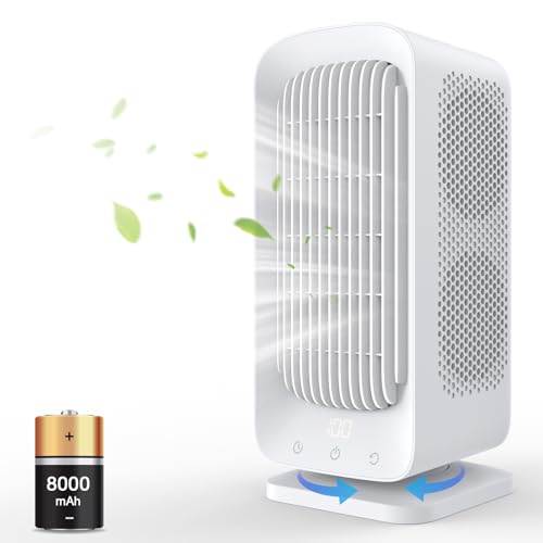Specification: Desk Fan, 8000mAh Battery Operated Tower Fan, 45°/90° Oscillating Fan, 5 Speeds, 8H Timer Tower Fan for Bedroom, Smart Display with Touch & Memory Bladeless Fan for Office Desktop Outdoor Indoor