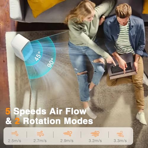 Dual Fan Power: Featuring dual turbine motors, our tower fan delivers powerful airflow reaching as much as 3.3m/s at the same time as maintaining low noise levels at all speeds. Choose between five wind speeds and an eight-hour timer function to tailor your cooling experience. Plus, two rotation modes (45° and 90°) make sure that precise airflow direction for maximum comfort.