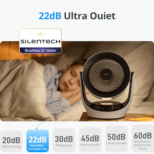 Specification: SwitchBot Smart Air Circulator Fan, Portable Battery Circulation Fan for Indoor/Outdoor Use, 22db Ultra Quiet, 9 Speeds Strong Airflow, 9H Timer, Compatible with Alexa When Paired Hub