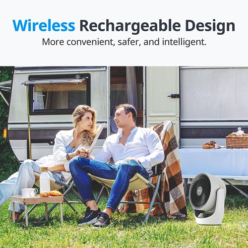 Rechargeable Design: Our Battery Circulation Fan supports both plug-in use and can be powered by a USB Type-C cable. Its 3600mAh rechargeable battery can last for hours on a single full charge with a portable design that is perfect for multiple scenarios such as in the bathroom, on balconies, and even outdoor campsites. Get rid of power limitations, so you can enjoy natural breeze without constraint.