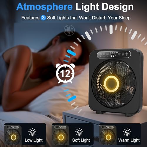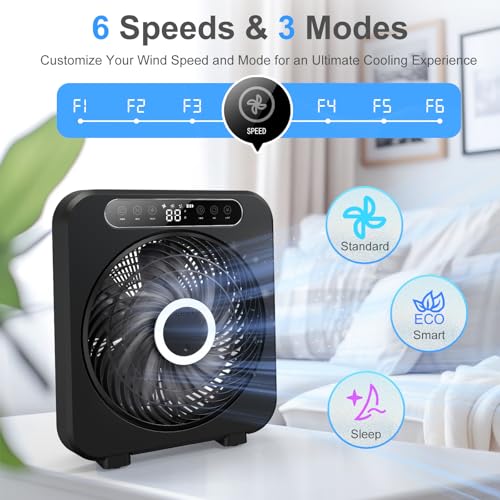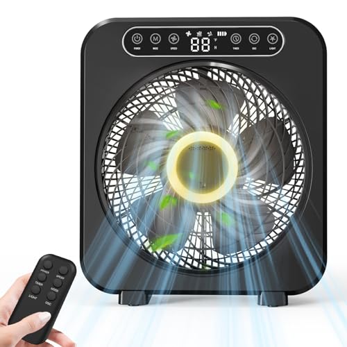 Specification: Table Fan, 9600mAh Rechargeable Box Fan, Quiet Running, Fast Cooling 10″ Desk Table Fan with Remote, 6 Speeds, 3 Modes, Smart Temperature, Timer, Light, Washable – Bedroom Office Desktop Household