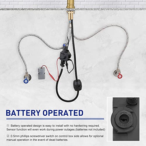 ▶Touchless Faucets Easy To Install—All installation accessories are in the box, including instructions and 9/16″ water supply line. Note: 4 AA batteries want to be purchased on your own. No plumber required, 30-minute DIY installation is easy and fast, saving your money!(Please contact us to send installation video)