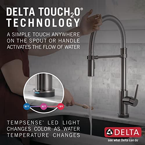 Specification: Delta Faucet Trinsic Pro VoiceIQ Single-Handle Touch Kitchen Sink Faucet with Pull Down Sprayer, Alexa and Google Assistant Voice Activated, Smart Home, Black Stainless
