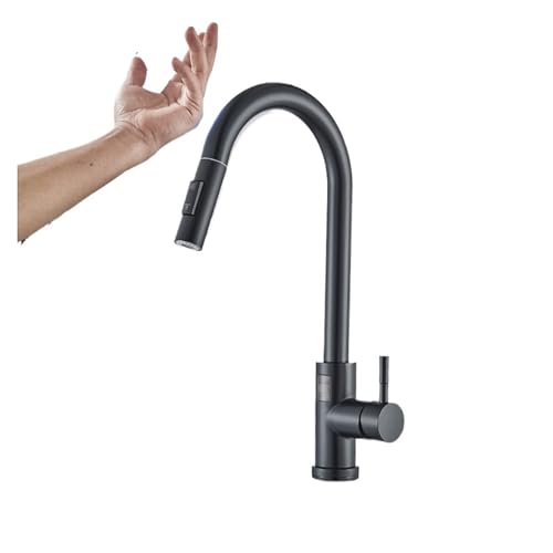 Specification: Kitchen Smart Touch Pull-Out Faucet Single Hole Pull-Out Spout Kitchen Sink Mixing Faucet Countertop Installation(White 3 Ways)