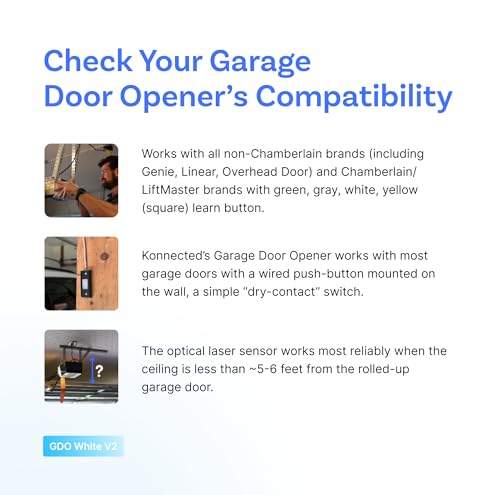 MAKES OLDER GARAGE DOOR OPENERS SMART: Konnected Smart Garage Door Opener White can make most traditional garage door openers smart; It retrofits most garage door openers that do not have a built-in smart home app integration