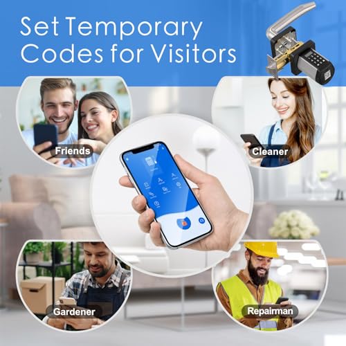 4 WAYS TO UNLOCK: Password, APP, IC card and physical key; Set 1 administrator password and 9 user passwords directly with the digital door lock; Also use the APP to set more user passwords and temporary passwords for simple use