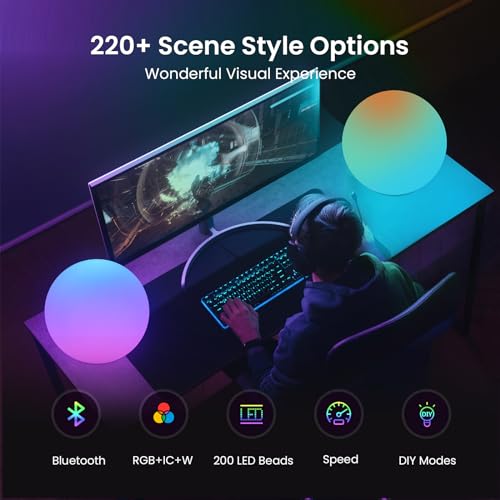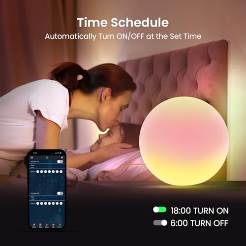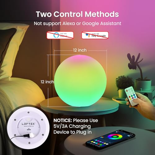 Specification: LOFTEK Color Changing Night Light, Smart LED Lamp with Bluetooth APP and Remote Control, Music Sync, 220 Scene Modes, 12-inch RGB Ball Mood Lighting for Living Room, Bedroom Event(Corded Electric)