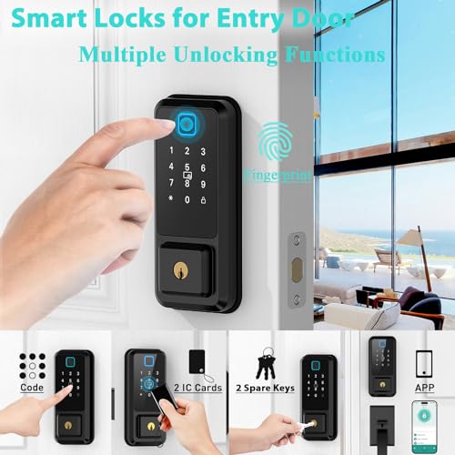 Specification: WiFi Front Door Lock Set, CINOP Smart Locks for Front Door, Keypad Door Lock, Keyless Entry Door Lock Deadbolt with Handle Set, Digital Fingerprint Lock APP Control Bluetooth Alexa Auto Lock, Black