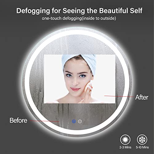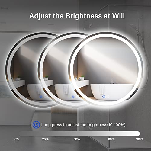 Specification: 24 Inch LED Round Backlit Mirror, Fashion Bathroom Decor Vanity Mirror with 3000K/4000K/6000K Adjustable, Anti-Fog, Smart Touch Button, Stepless Dimmable Lighted Makeup Mirror