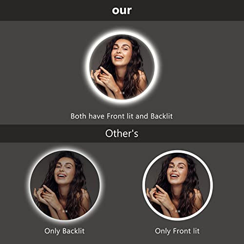【ETL Certification & High Quality Materials】 This product is ETL certified, conforming to U.S. producing safety standard. This bathroom LED vanity round mirror adopts environmental friendly, copper free HQ silver coating glass, and IP54 waterproof LED lights to verify 100% safety in wet bathroom.