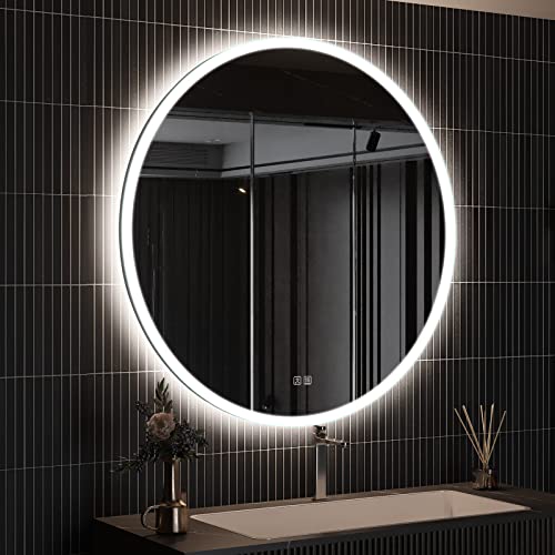【Reliable Packing & Easy Installation】 circle LED lighted vanity mirror is secured by buffer foam box with extra protection. Plug and screws are included the package. Fix the screws on the wall to hold this round LED bathroom mirror. Use plug to plugin power outlet or immediately connect switch by hard wire. Recommend the mirror is installed by a professional electrician.