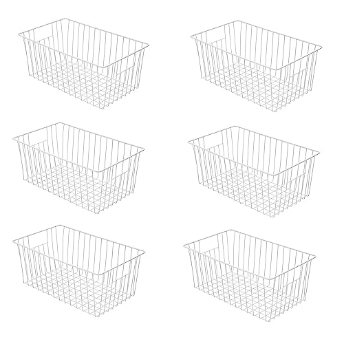 Specification: 16Lx12Wx6H inch Wider Freezer Organizer Baskets Container, Refrigerator Metal Wire Storage Bins with Handles for Kitchen, Pantry, Cabinet, Closets – Pearl White(6 Packs
