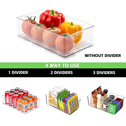 5 Pack Pantry Organizer and Storage Bins with Removable Dividers, Snack Organizer for Pantry, Chip,Clear Acrylic Food Organizer Bins for Kitchen, Fridge, Cabinet,Packets, Pouches