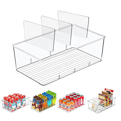 Specification: 5 Pack Pantry Organizer and Storage Bins with Removable Dividers, Snack Organizer for Pantry, Chip,Clear Acrylic Food Organizer Bins for Kitchen, Fridge, Cabinet,Packets, Pouches