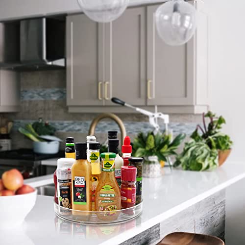 Amolliar Large Lazy Susan Rotating Turntable Organizer for Cabinet, Kitchen, Pantry, Dining Table, Fridge, Countertop, Vanity – Spinning Food Storage Container for Spices, Condiments, Clear 11″ 1 Pack