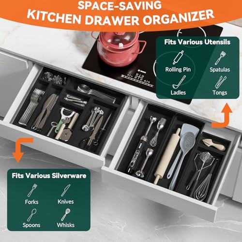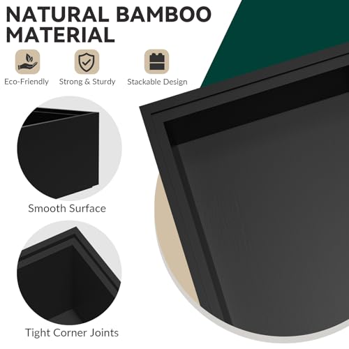 Specification: Bamboo Kitchen Drawer Organizer – Set of 2, Stackable Utensil Organizers, Wooden Storage Box Tray for Cabinet, Pantry, Bathroom Countertop, Multi-use Organization and Storage (Black)