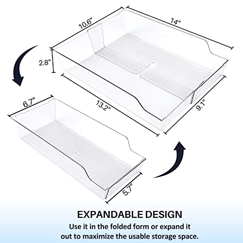 【EXPANDABLE DESIGN】These storage bins are designed to fit into the spaces that you need it to, you can use it in the folded form or expand it out to maximize the usable storage space. Expand or not to create the storage solution that works best for you, organize all of your essentials to make organizing and everyday living with ease, creating a clean and organized home. SIZE from 5.7” x 13.2” x 2.8” to 9.1” x 13.2” x 2.8”.