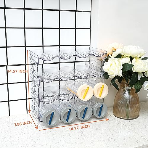 Specification: IEEK Plastic Stackable Bottle Storage Holder Rack Holds 16 Bottles,Free-Standing Water Bottle/Wine and Drink Organizer Shelf for Kitchen Cabinet,Fridge,Countertop,Pantry,Freezer,4 PackX4 Bottles,Clear