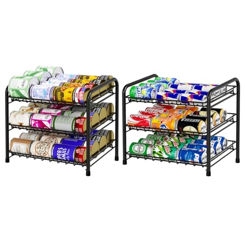 Specification: Pack of 2 Can Storage Organizer Pantry, Canned Food Organizers for Kitchen Dispenses 72 Cans-Black