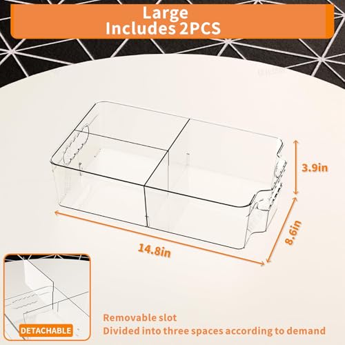 【2 Pieces Laege Fridge Organizer Bins Set】14.8″x8.6″x3.9″(Set of 2 With 4 Dividers) 2 PCS Kitchen Organization Set Meet All Your Needs:Suitable for pantry,refrigerator, freezer,fridge, kitchen,countertop,cabinet,drawer,bathroom,and more
