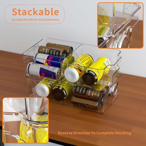 【Stackable design Refrigerator Organizer Bins】Stackable design lets you use kitchen countertops or refrigerators to save more space,The refrigerator organizers are also built with handles for easy pulling, it may be easily transported from place to place