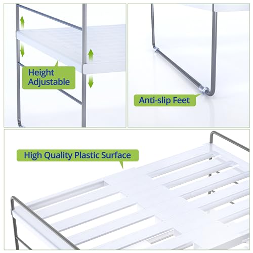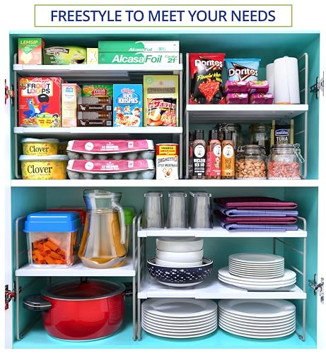 Adjustable Height Shelf Organizer: This shelf organizer offers adjustable height options to fit your specific storage requirements. Ideal for cabinet organization, it can be used as a cabinet shelf or cabinet organizer shelf, boosting your kitchen cabinet organization and storage capabilities.