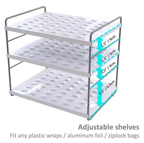 YAN & HIN 3-Tier Pantry Cabinet Organizers and Storage Adjustable Height and Expandable Kitchen Plastic Wrap Organizer Sturdy Aluminum Foil Countertop For Cupboard Multi-Purpose Use