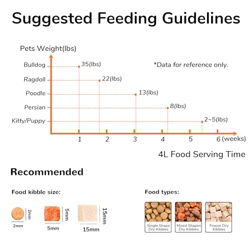 Efficient Time – The cat food dispenser is equipped with 4L transparent food container, shows food levels at a glance, without the need for frequent feed addition. Ideal for short-term business trips, travelers, or busy office workers, ensuring that pets can also enjoy delicious food on time when you go out.