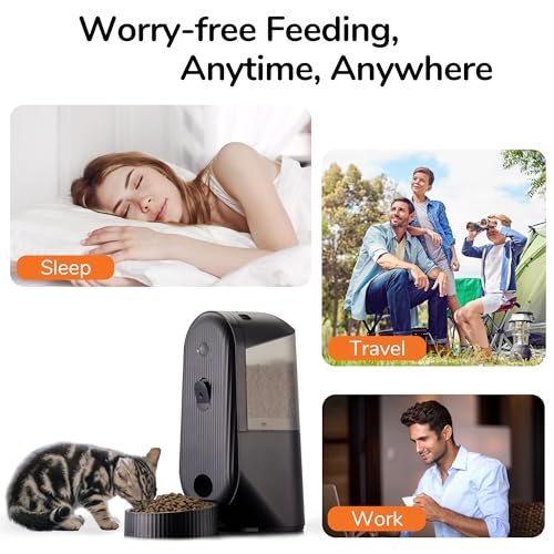 1080P Adjustable HD Camera – The timed cat feeder has a adjustable 1080P camera for clear viewing of your pet and food bowl. Night vision ensures visibility always. Motion detection keep you updated on pet activity.