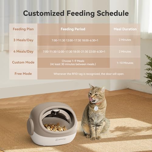 【Exclusive Tag Activated Feeder】: Ensure your pet’s meals are exclusively theirs with the Petnology RFID automatic pet feeder, equipped with a lightweight collar sensor. Perfect for multi-pet households, it prevents food-stealing and accommodates special dietary needs. Each smart feeder comes with one tag and supports up to 3 collar IDs. (additional collar tags can be purchased separately; Microchip not supported)