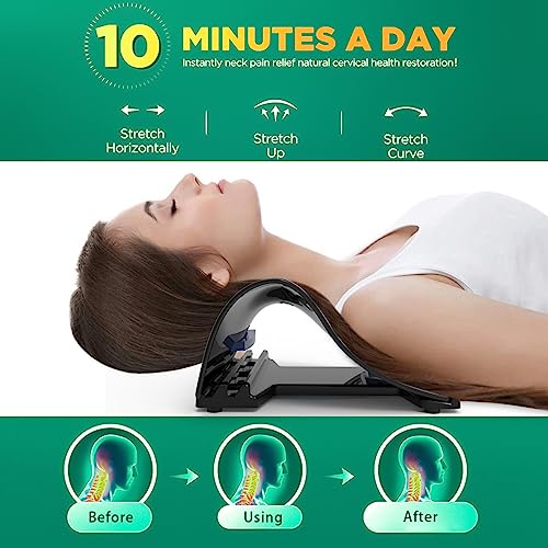 ✅【RELIEF YOUR PAINS EVERYWHERE YOU WANT】The heated neck traction, your nice companion no matter at home, office, travel. Different from most traditional cervical traction systems, this neck support pillow for neck and shoulder pain is easy to use, just simply and comfortably lying down in couch or bed, even simply lean on this neck stretcher while working in front of computer. Its 0. 7 lbs weight and small size let you can carry it anywhere.