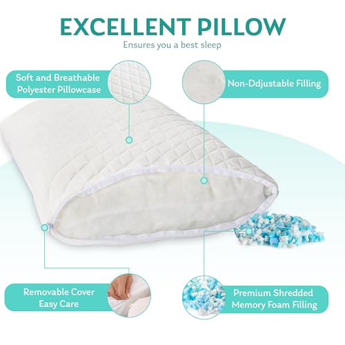 Specification: Pillow Queen Size 1 Pack,Shredded Memory Foam Bed Pillow for Sleeping woth Removable Pillow Cover, Medium Firm Breathable and Soft Standard/Queen Pillow (28″x18″)