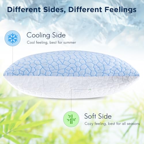 Worried About Sweaty Nights? COOLING Technology: 1. This cooling pillow boasts state of the art cooling fabric on one side, providing a refreshing chill that helps you stay cool and comfortable; 2. With its shredded foam construction, this hypoallergenic cold pillow promotes better airflow compared to solid foam, helping to keep watch over temperature and keep you cool during the night