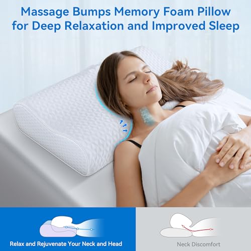 Innovative Massage Bumps Design: Our pillow features unique massage bumps for enhanced relaxation. These convex nodes, strategically placed, align with neck pressure points, offering therapeutic benefits to alleviate tension, stress, chronic neck pain. They promote blood circulation and deeper sleep. Adapting to your sleeping position, these bumps work in sync with the pillow’s contour, ensuring a soothing, comfortable experience all night.