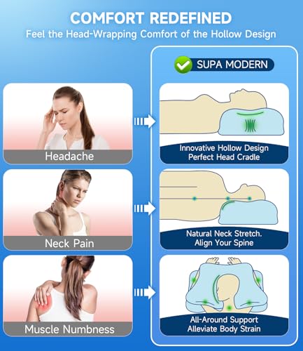 Specification: SUPA MODERN Cooling Cervical Neck Pillow for Sleeping, Contour Side Sleeper Pillow for Adults, Ergonomic Memory Foam Orthopedic Pillow Neck Pain Relief, Stomach Sleeping Pillow with Luxury Cool Cover