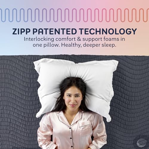 Specification: ZIWI Zipp Pillow, Revolutionary Vertical Interlocking Foam for Perfect Comfort, Support & Cooling, Better Than Memory Foam, Highest-Grade, Chemical Free Materials, 3 Year Warranty, Standard/Queen