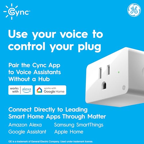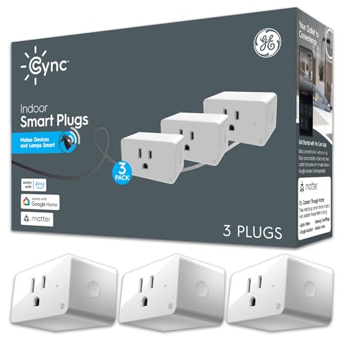 Specification: GE CYNC Indoor Smart Plug, Matter Compatible, Bluetooth and Wi-Fi Outlet Socket, Compatible with Alexa and Google Home, Voice Control Outlet, Great Christmas Gifts for Men, Holiday Gift Idea (3 Pack)