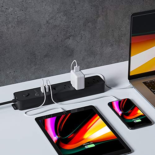 OUTSTANDING USB PERFORMANCE: Get our power strip now and profit from the 4 USB ports, each single port featuring a 2.4A max output when single port is charging! 3.4A total output can charge your whole appliances fast and efficiently, with no need a single care in this world! Ideal for technology lovers that need a desk power strip to satisfy all of their needs! Compatible with major mobile devices, such as Android /iOS phones and pads, Bluetooth speakers, USB fans and lamps!